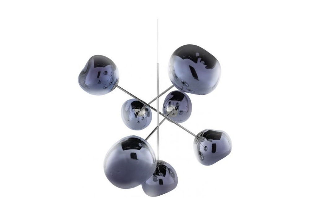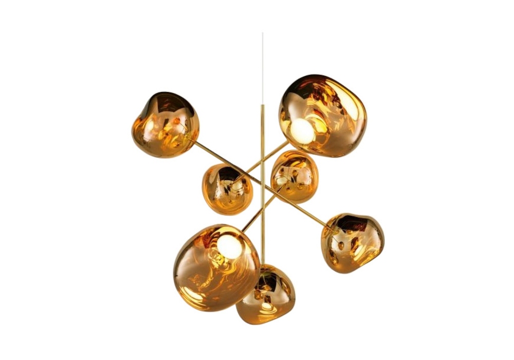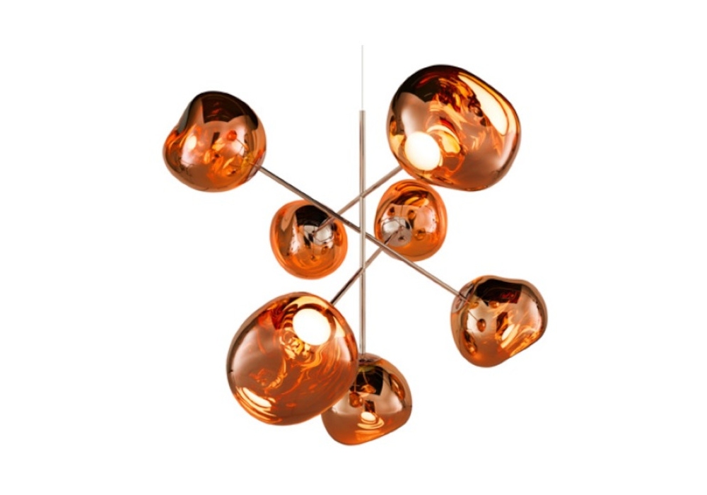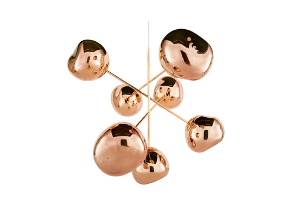 Melt Large conçu par Tom Dixon est un lustre composé de sept lampes en polycarbonate, disponibles en différentes finitions.