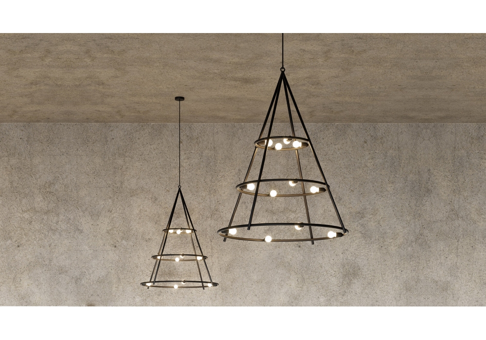 El Porís conçu par Herzog & de Meuron pour Artemide est un lustre structuré par une forme conique avec des cercles concentriques en tube d'acier peint. La source lumineuse adoptée est un type LED dimmable. El Porís est disponible en différents modèles.