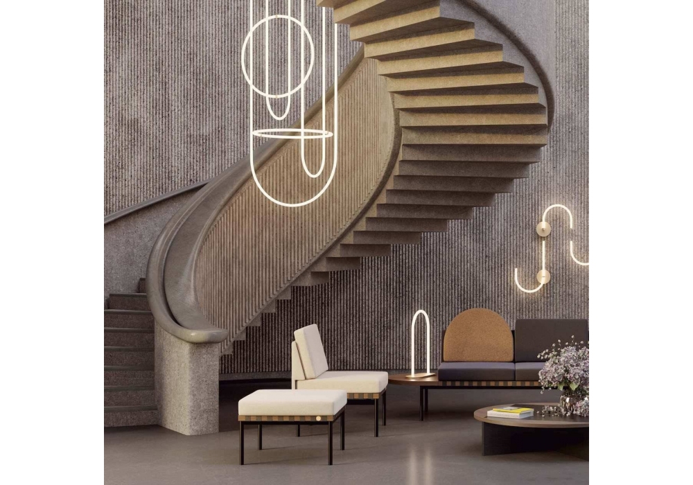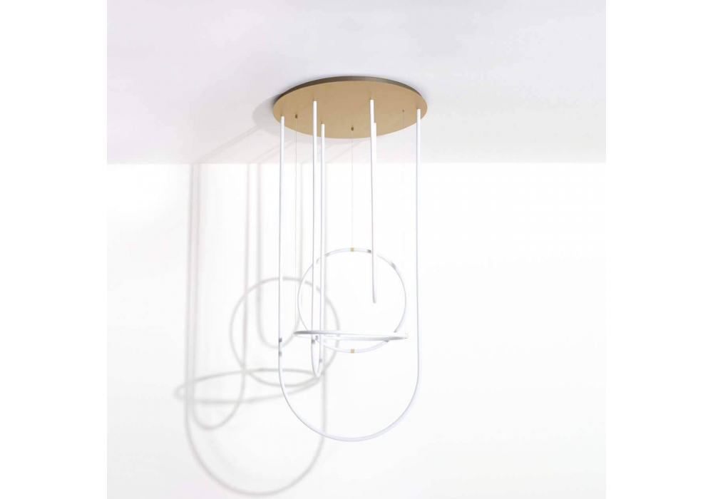 Unseen conçu par Studiopepe pour Petite Friture est un lustre LED en silicone, polycarbonate, laiton et acier peint.