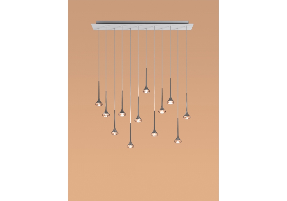 Fairy conçu par Manuel Vivian pour Axo Light est un lustre avec structure en métal et diffuseurs en cristal. Disponible en différentes finitions et tailles.
