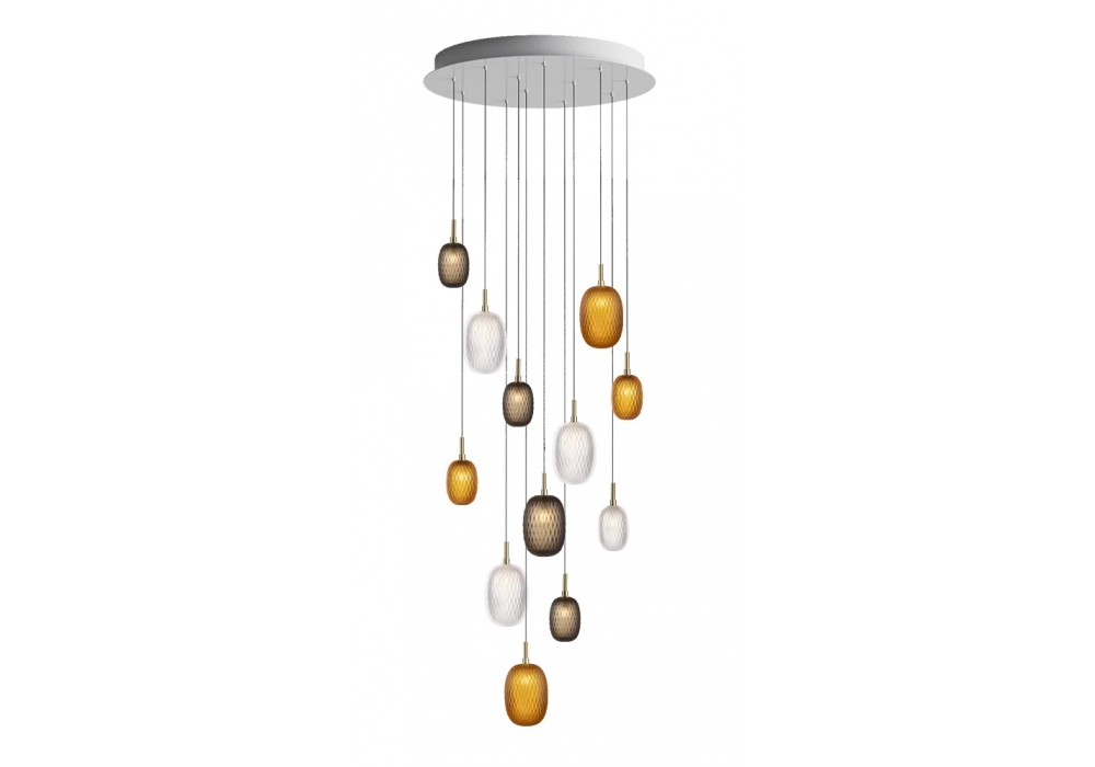 Metamorphosis conçu par Rony Plesl pour Bomma est un lustre avec diffuseurs en cristal soufflé bouche et monture en métal. Il est disponible en différentes finitions et modèles.
