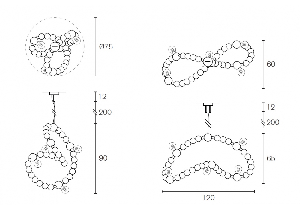 | Source lumineuse | Vertical_ 4 x E27; Horizontal_ 5 x E27. |