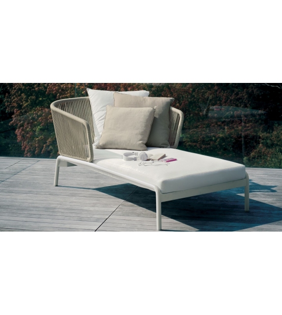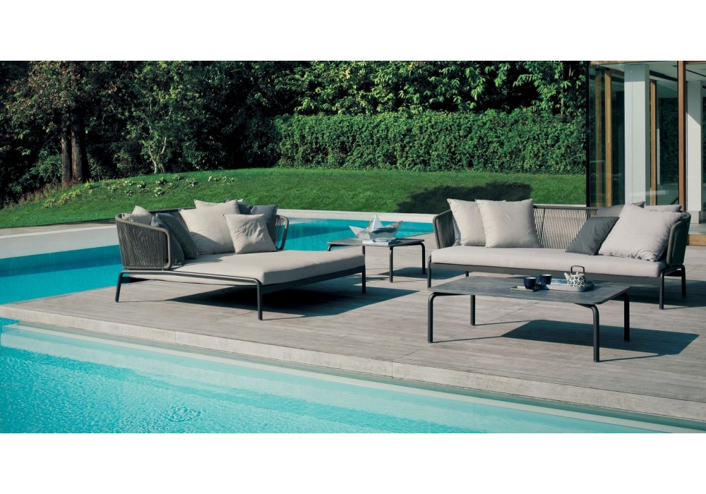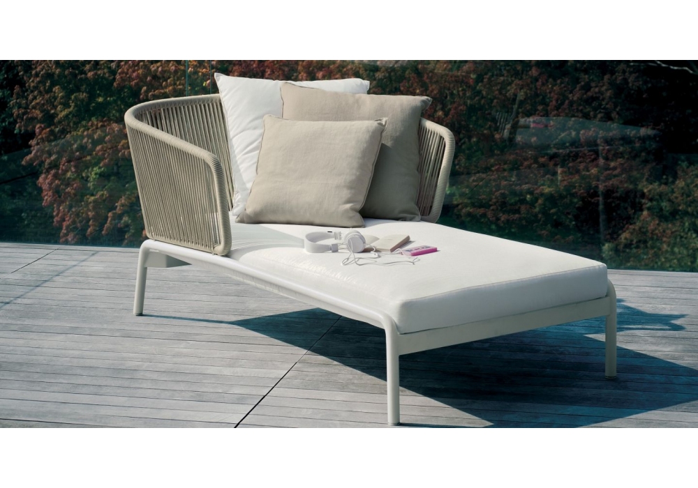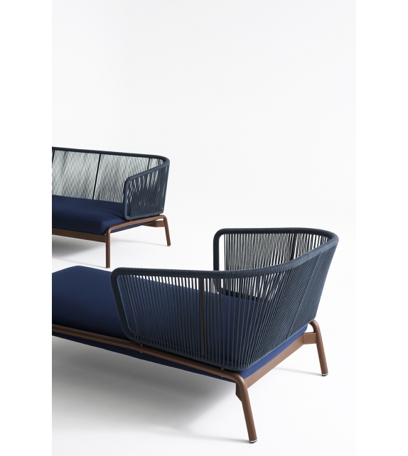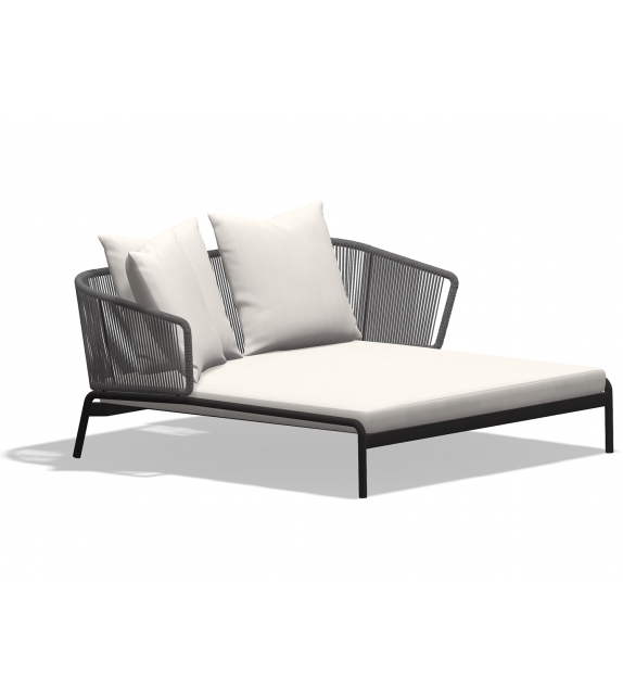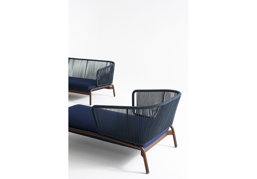 Spool conçu par Rodolfo Dordoni pour Roda est une chaise longue avec structure en acier inoxydable laqué avec une peinture poudre et cordes élastiques fixés à la structure avec des crochets en acier inoxydable. Spool est une collection avec un design explosif, un équilibre parfait entre la force et la légèreté, qui ne néglige pas le confort des sièges, qui peuvent accueillir une abondance de coussins doux. Disponible en deux dimensions.