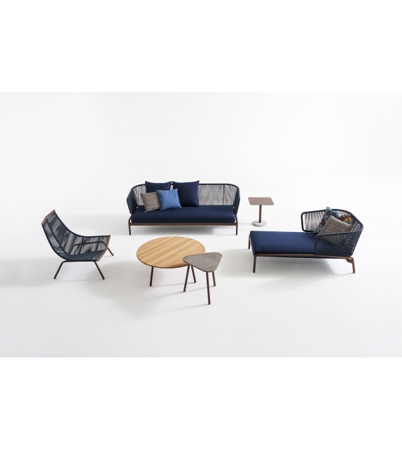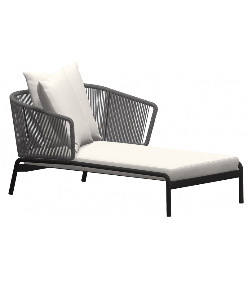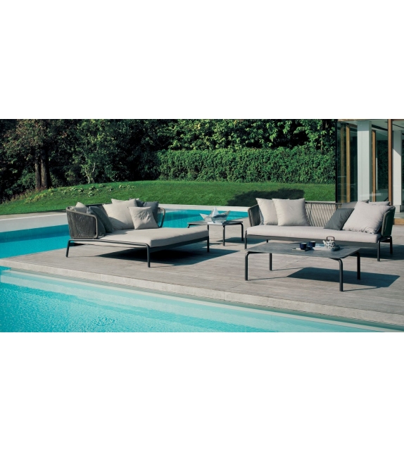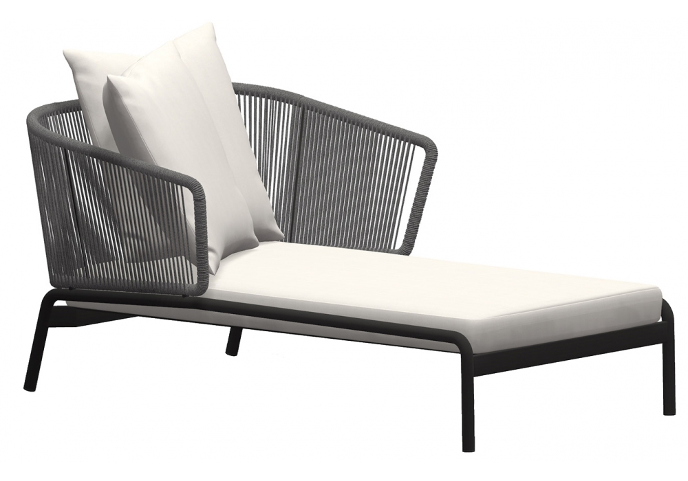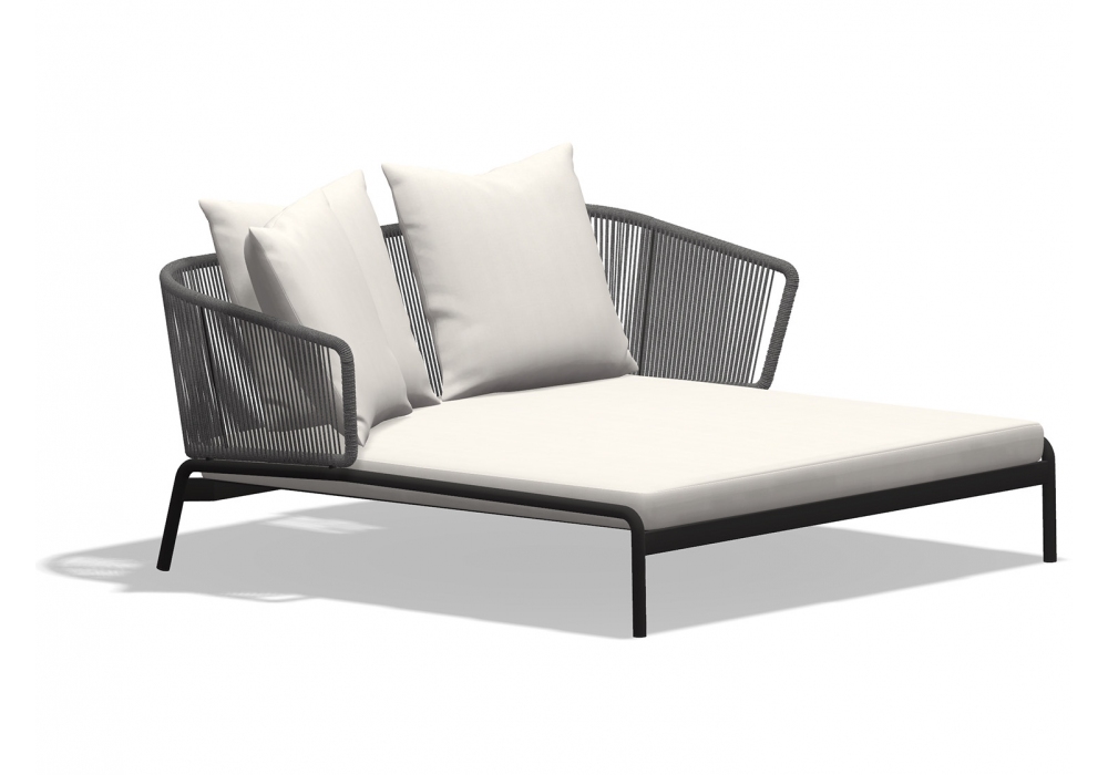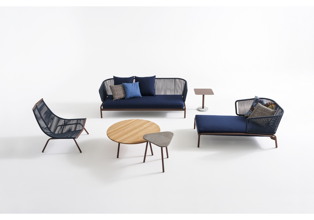 Spool conçu par Rodolfo Dordoni pour Roda est une chaise longue avec structure en acier inoxydable laqué avec une peinture poudre et cordes élastiques fixés à la structure avec des crochets en acier inoxydable. Spool est une collection avec un design explosif, un équilibre parfait entre la force et la légèreté, qui ne néglige pas le confort des sièges, qui peuvent accueillir une abondance de coussins doux. Disponible en deux dimensions.