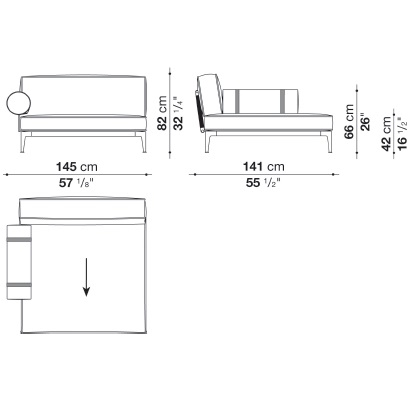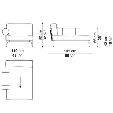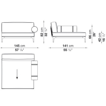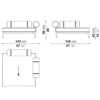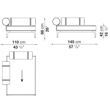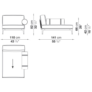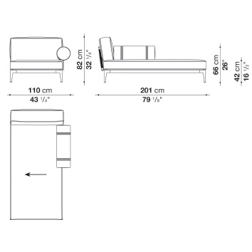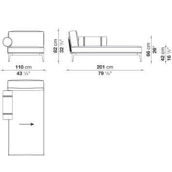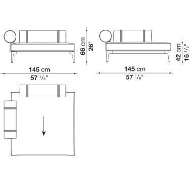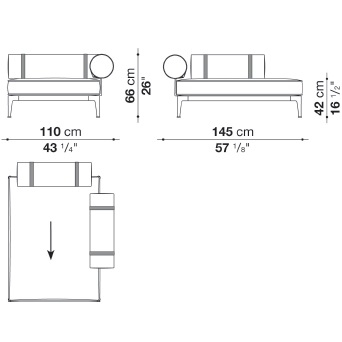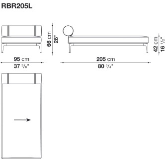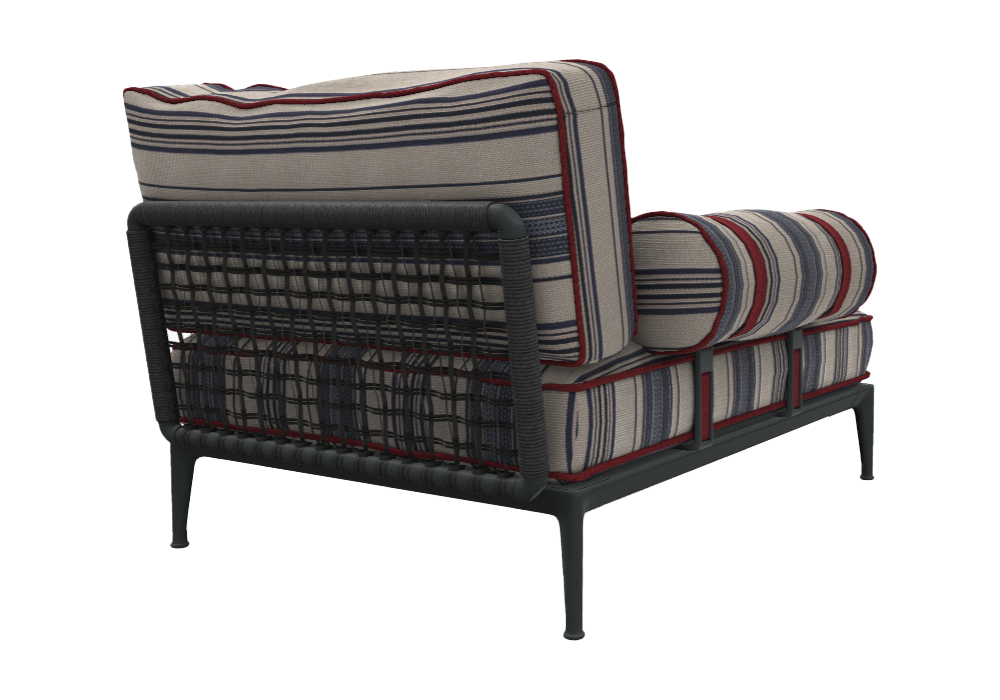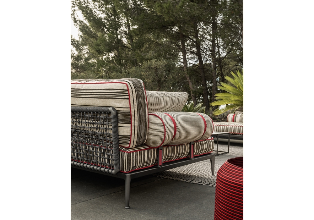 Ribes conçue par Antonio Citterio pour B&B Italia Outdoor est une Chaise Longue pour l'extérieur. Revêtement en tissu. Piètement à lattes sur structure en aluminium, accoudoirs et dossiers disponibles avec cadre avec entrelacs en poliproyle ou à rouleaux.