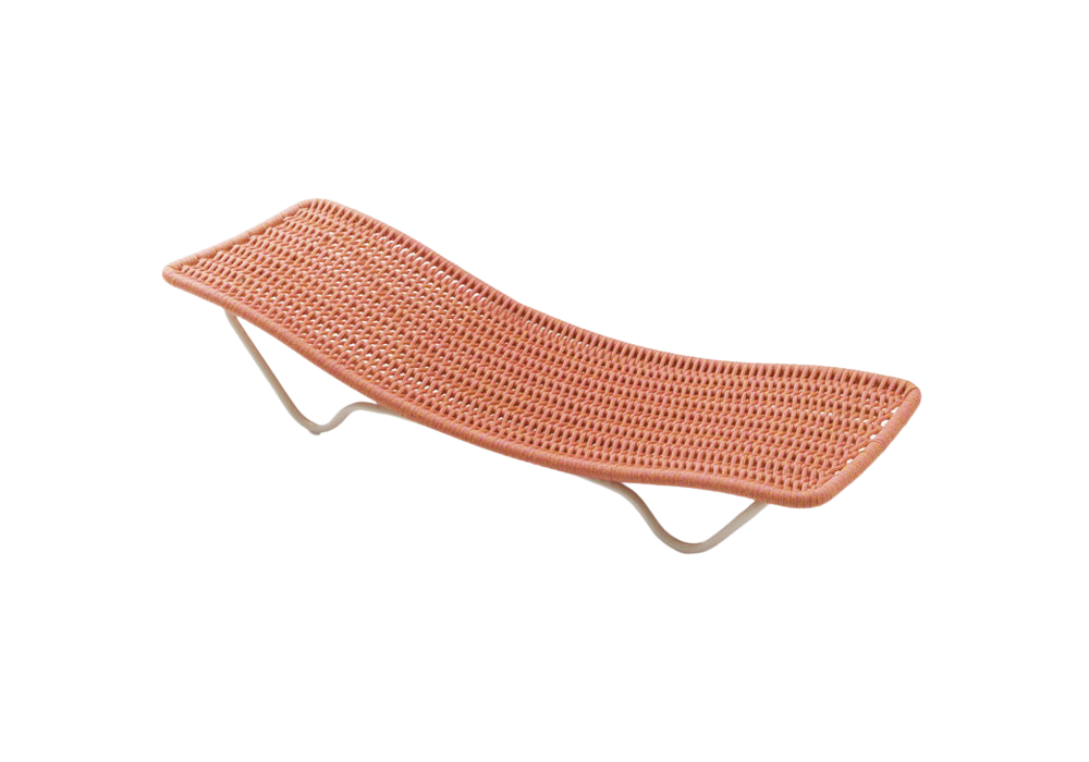 Jardín conçu par CRS Paola Lenti est une chaise longue avec revêtement fixe tissé à la main avec des cordons plats en fil Twiggy. La structure est en aluminium verni brillant avec des embouts en plastique. La collection Jardín est un hommage à l'architecte et designer Clara Porset.