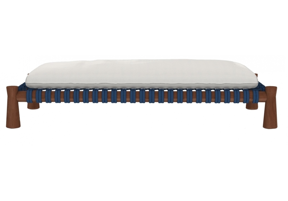 Guna conçu par Chiara Andreatti pour Gervasoni est un banc / lit de repos réalisé avec structure en iroko huilé tissé avec corde nautique et matelas avec rembourrage amovible. Coussins en option sur demande.