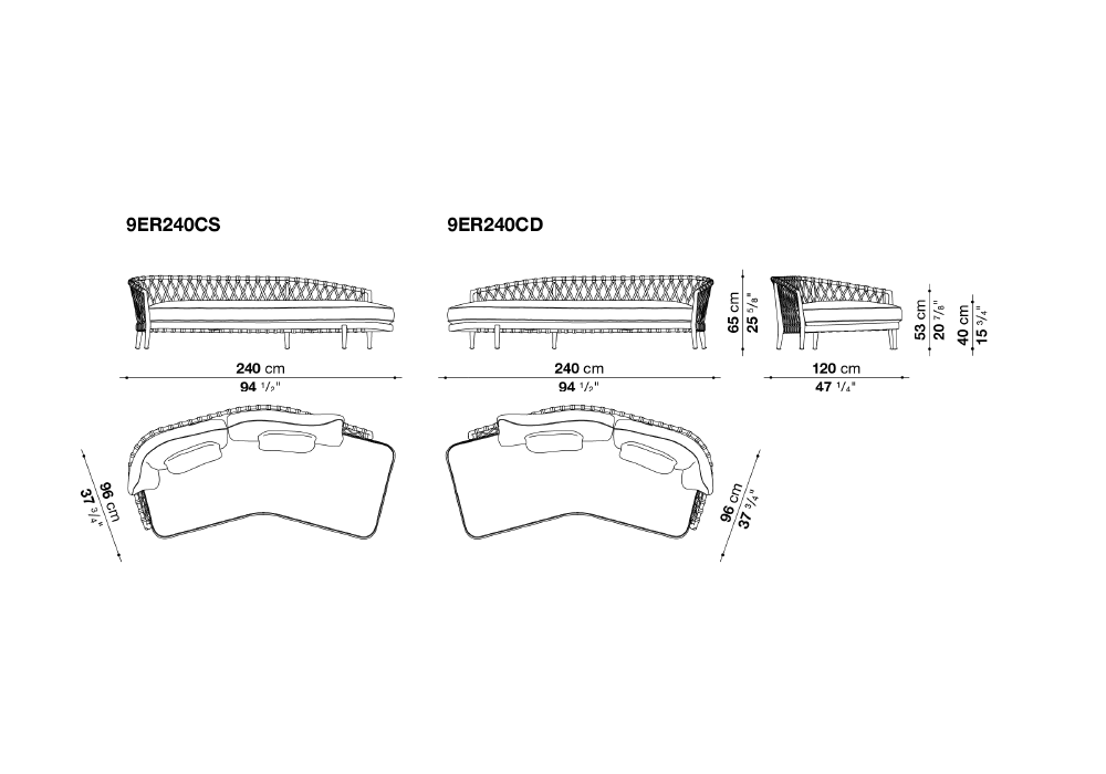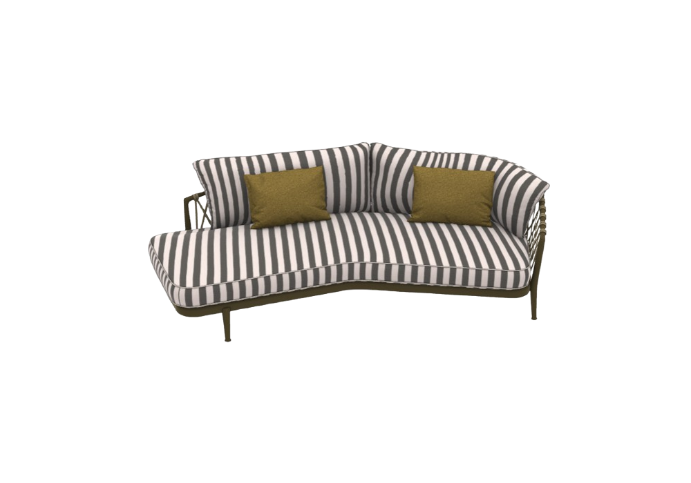 Erica conçue par Antonio Citterio pour B&B Italia Outdoor est une dormeuse dotée d'une structure en aluminium peint et d'un tissage en fibre de polypropylène disponible dans différentes combinaisons de couleurs. Le revêtement des coussins est en tissu, avec possibilité de choisir différentes finitions/tissus pour l'assise et le dossier.