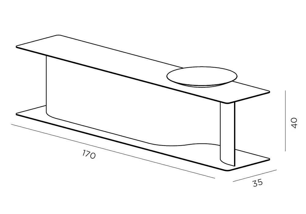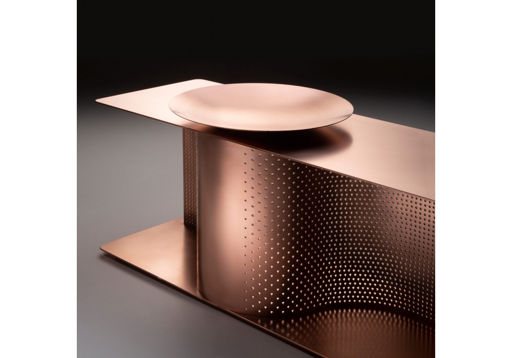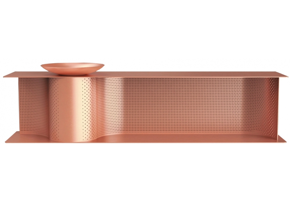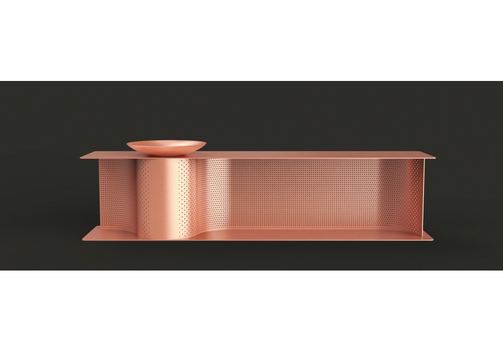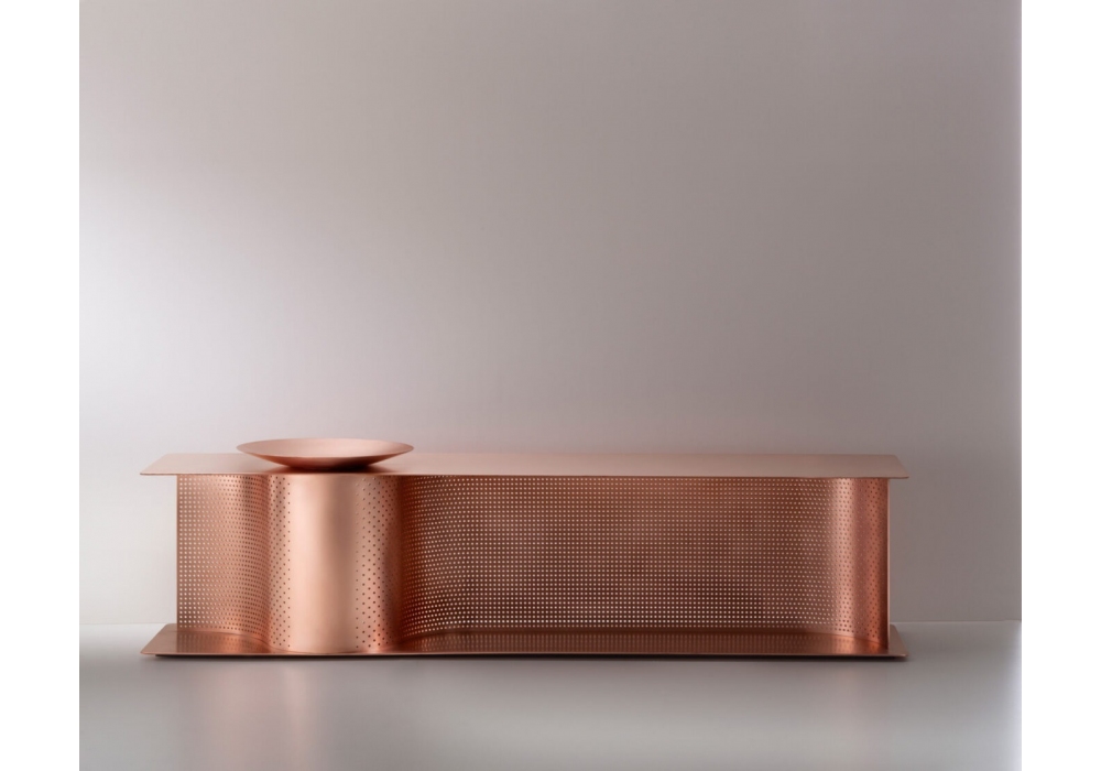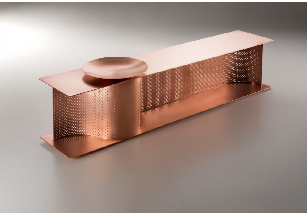 Wave conçu par Lanzavecchia & Wai pour DeCastelli est un banc à chaussures avec plaque "pocket vide" en cuivre naturel.