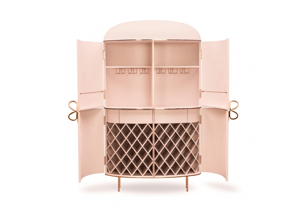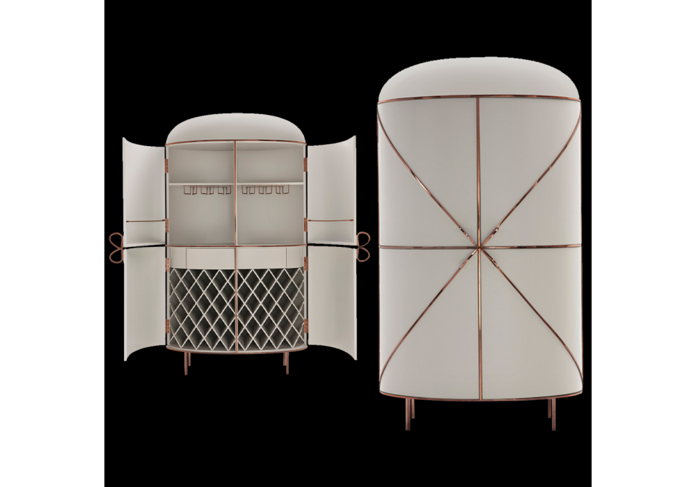 88 Secrets Bar signé par Nika Zupanc pour Scarlet Splendour est une meuble bar par formes élégantes et sinueuses avec