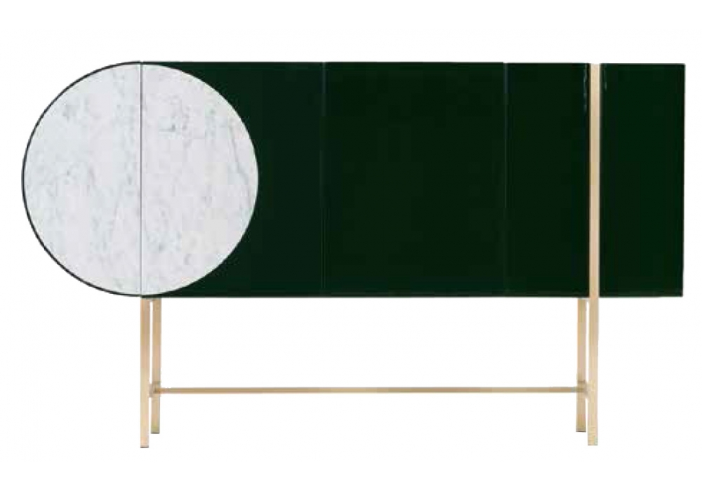 Selene conçue par Hagit Pincovici pour Baxter est une meuble basse avec structure laquée et une porte ronde particulière disponible en différentes finitions de marbre.