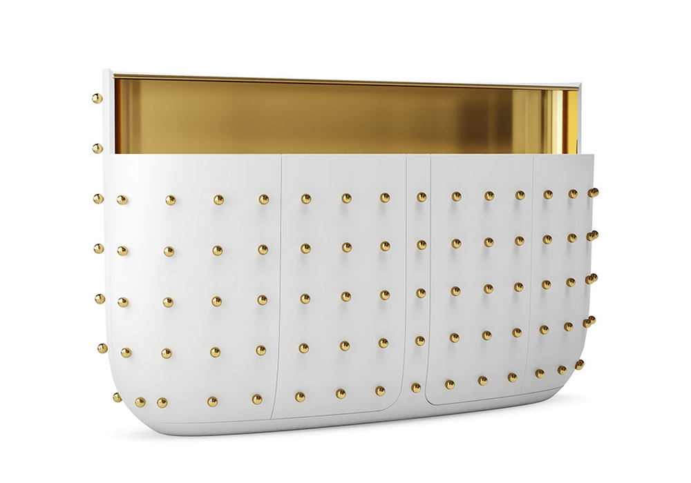 Bar Oasis conçu par Richard Hutten pour Scarlet Splendor est un meuble bar réalisé en MDF, contreplaqué et laiton.