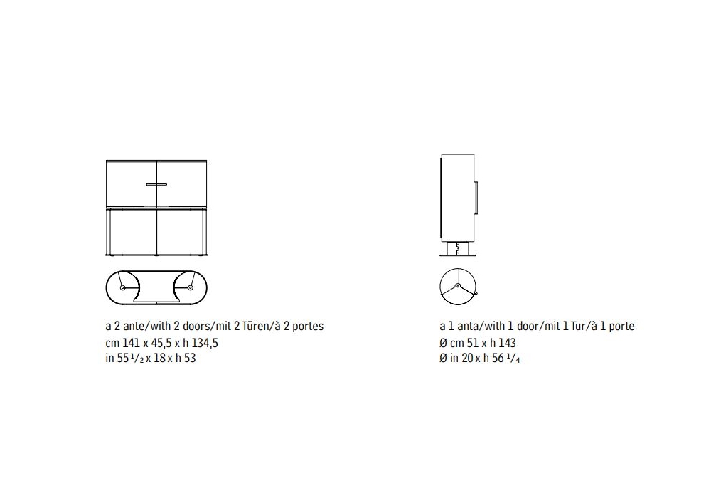 | Dimensions | 141 x 45,5 x H 134,5 cm; Ø 51 x H 143 cm. |