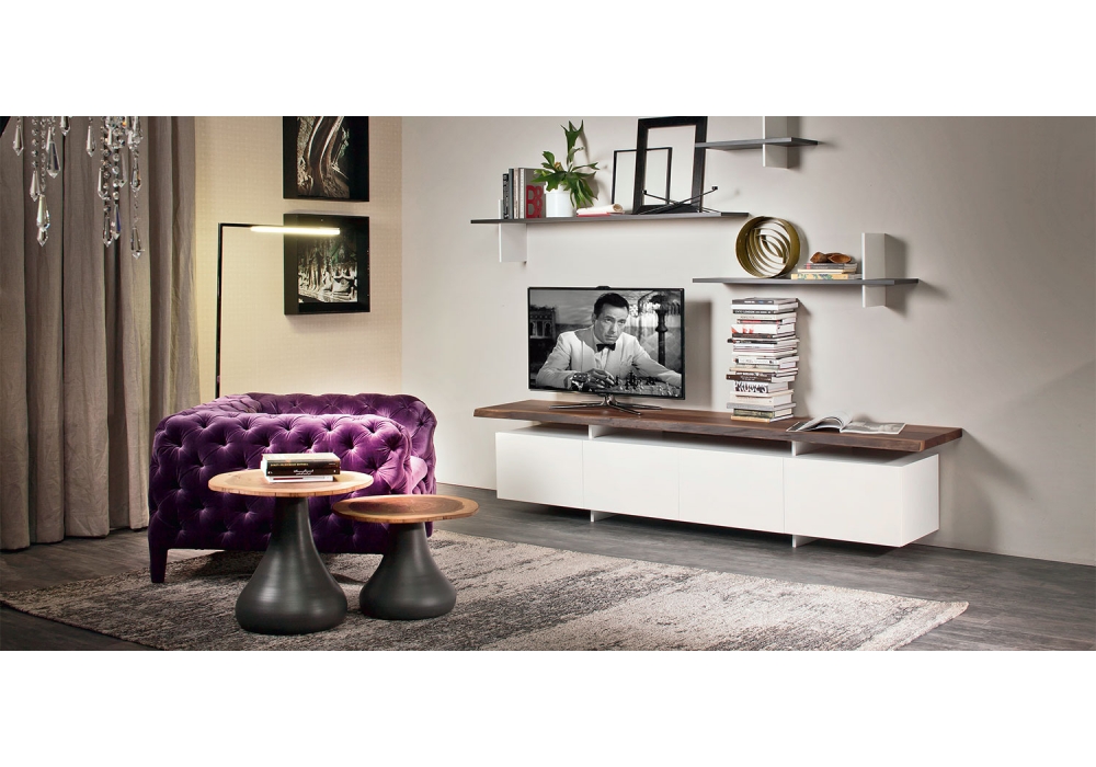 Seneca conçu par Paolo Cattelan pour Cattelan Italia est un meuble TV avec 3 ou 4 portes en bois laqué disponible en deux finitions: blanc et graphite mat. Plateau du même finition ou en noyer Canaletto, chêne brûlé ou naturel avec bord irrégulier en bois massif. Disponible en deux dimensions.
