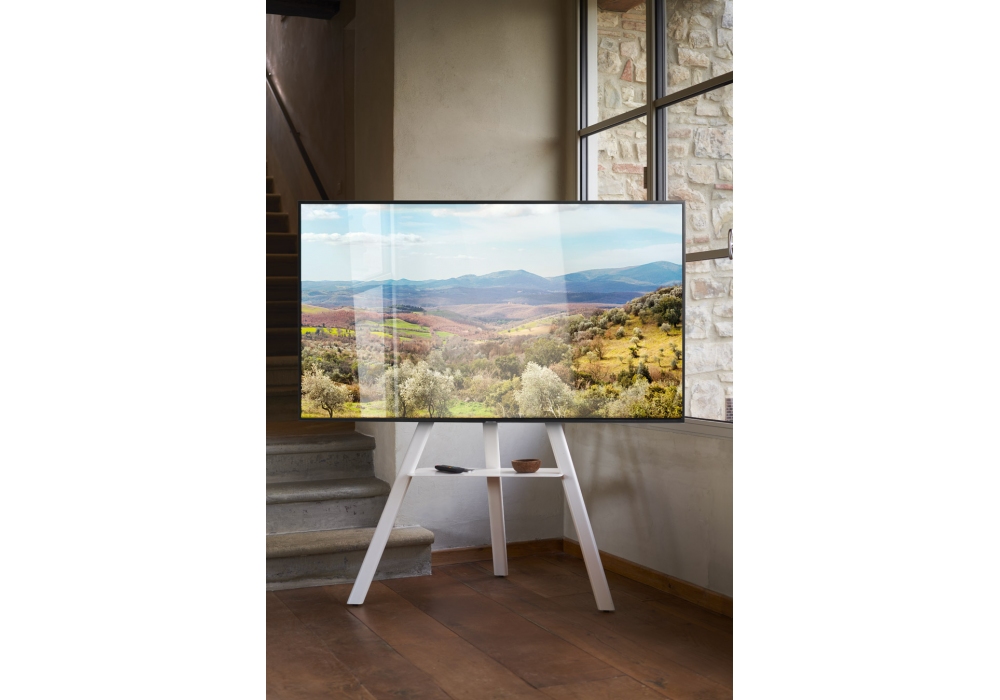 Cartesio conçu par Lapo Ciatti pour Opinion Ciatti est un support / support multimédia en acier avec colonne de collecte de câbles et étagère intégrée, pour supporter des téléviseurs de 43 à 82 pouces ou un tableau magnétique avec cadre en aluminium disponible en deux versions: noir pour les craies, blanc pour les marqueurs. Disponible en différentes finitions.