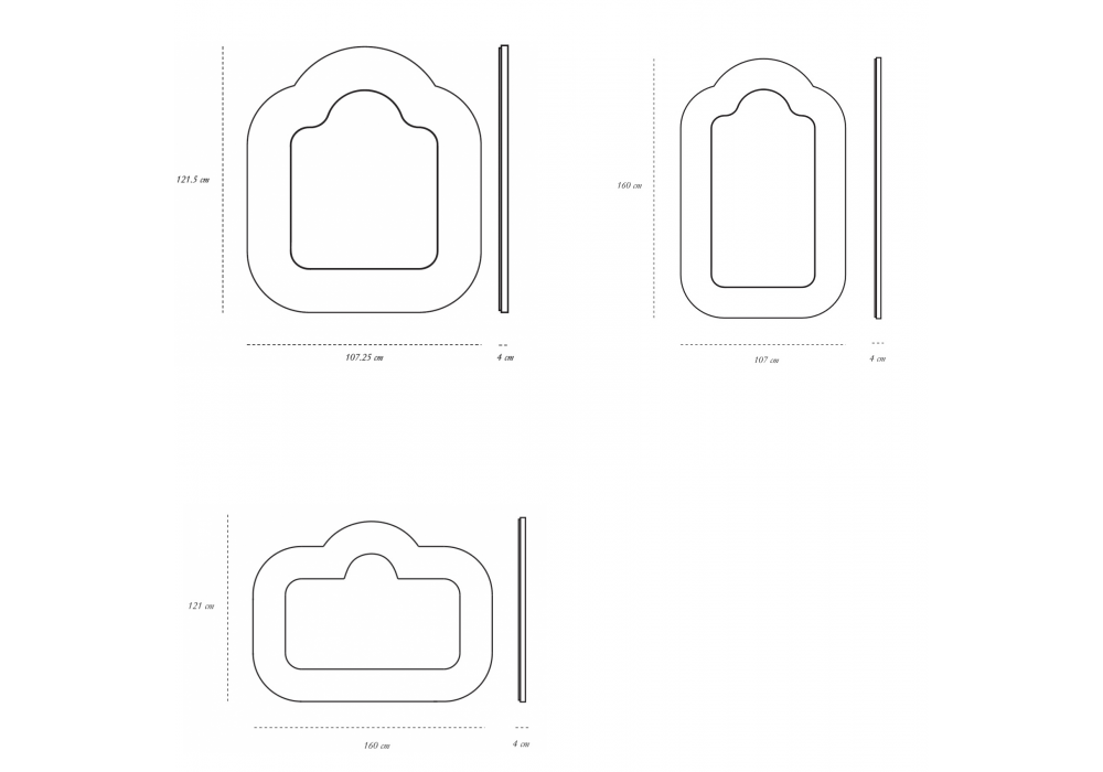 | Dimensions | 107.25 x 4 x H 121.5 cm; 107 x 4 x H 160 cm; 160 x 4 x H 121 cm. |