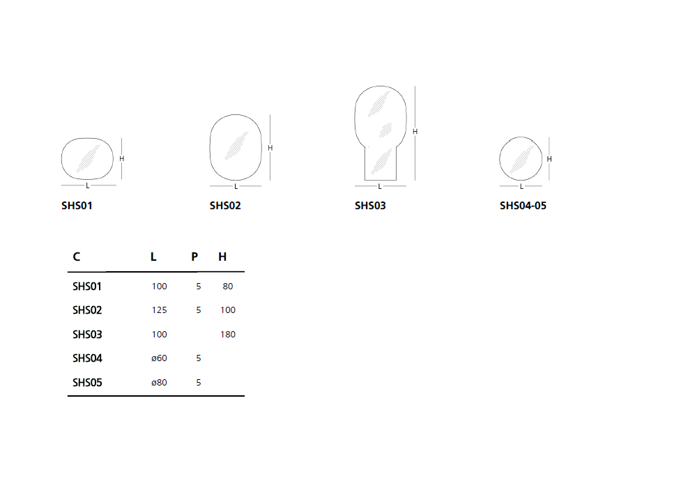 | Dimensions | 100 x 5 x H 80 cm; 125 x 5 x H 100 cm; 100 x H 180 cm; Ø 60 cm x 5 cm; Ø 80 cm x 5 cm. |