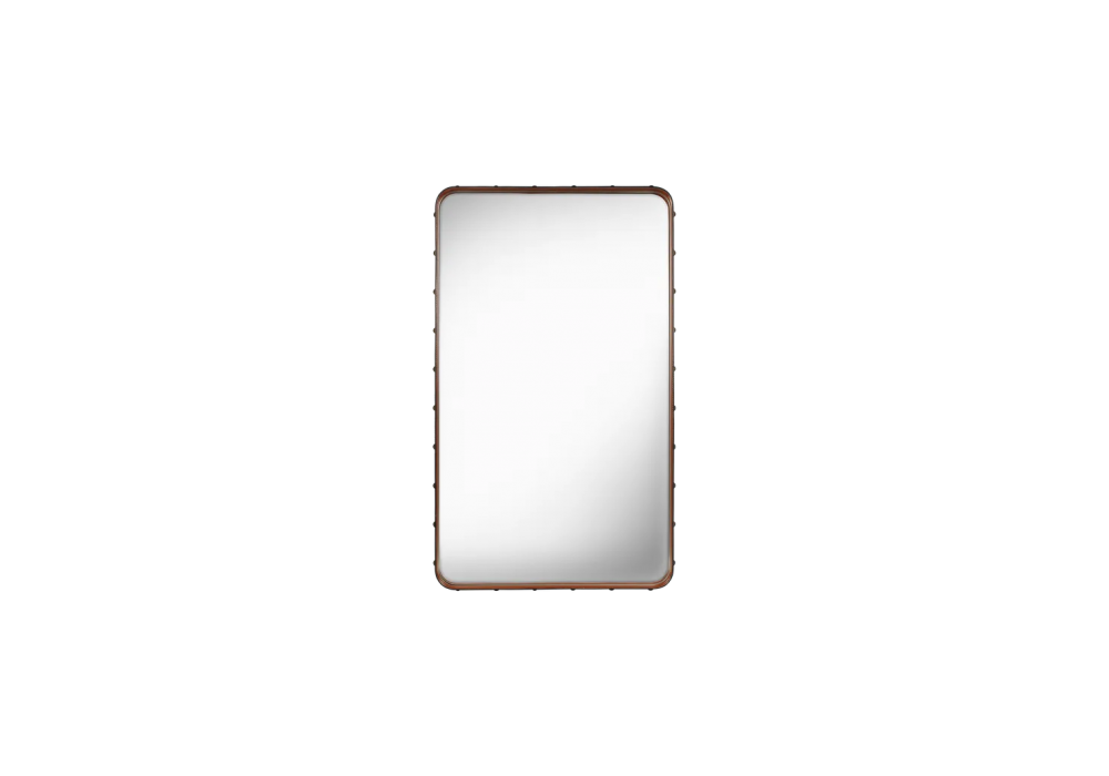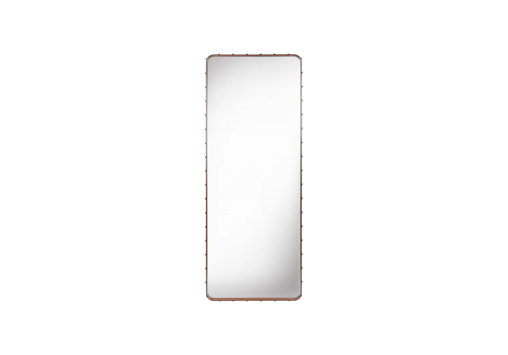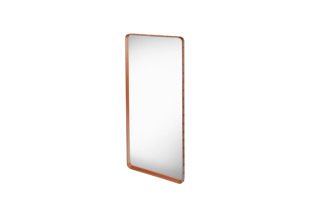 Adnet conçu par Jacques Adnet pour Gubi est un miroir rectangulaire avec cadre en cuir. Disponible en différentes finitions et dimensions.