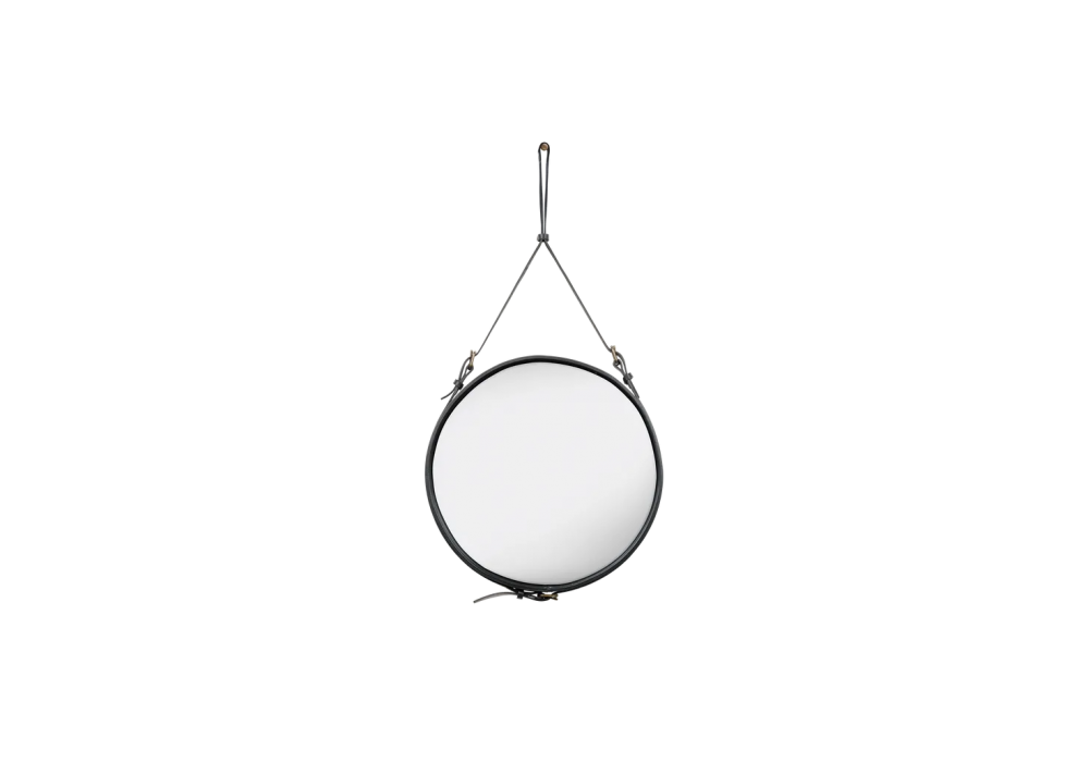 Adnet conçu par Jacques Adnet pour Gubi est un miroir rond avec cadre en cuir. Disponible en différentes finitions et dimensions.