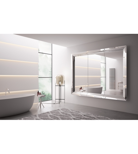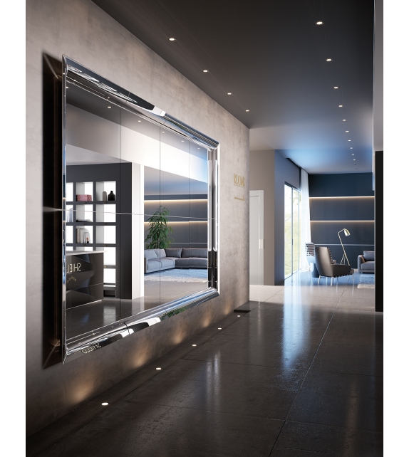 Caadre conçu par Philippe Starck pour Fiam est un miroir mural avec un cadre composé de quatre éléments courbes avec une finition argentée au dos. Sur demande (pour certaines tailles), il est possible d'ajouter un kit d'éclairage LED avec variateur et régulation de température. Également disponible dans des dimensions personnalisées et dans des configurations modulaires.