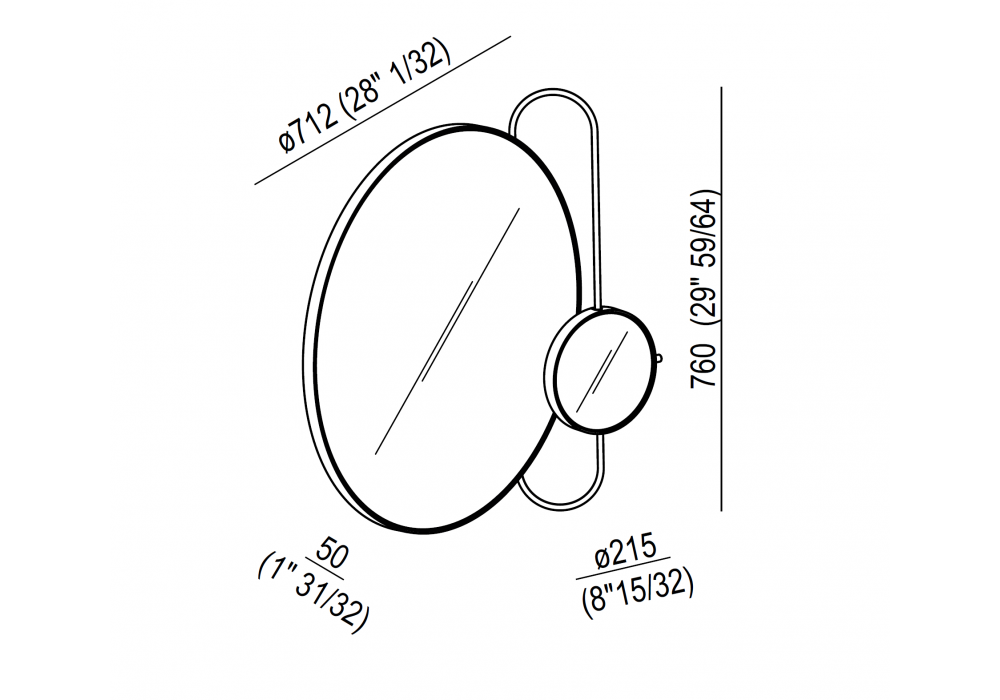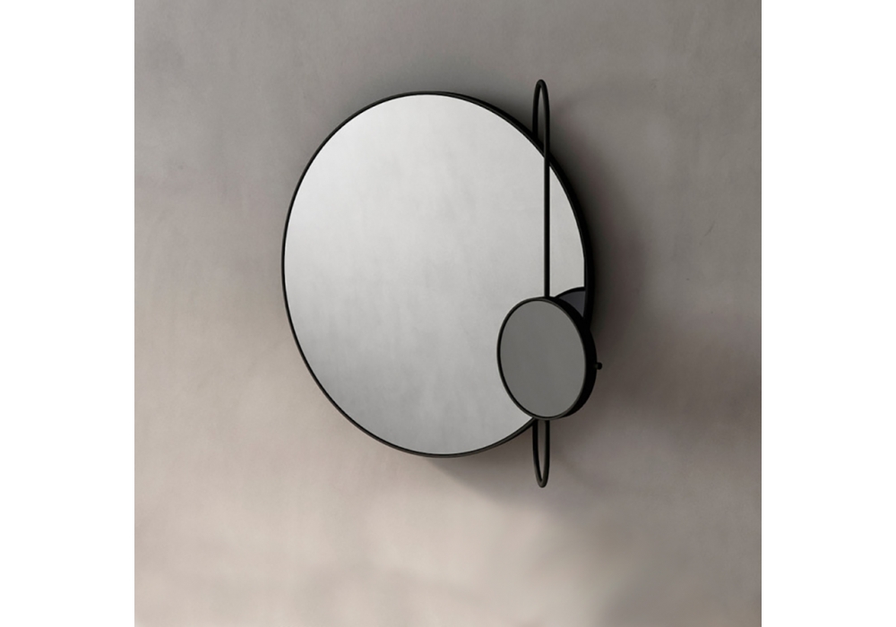 Revolving Moon conçu par Studiopepe pour Agape est un miroir mural rond avec structure en MDF peint en noir. Loupe orientable et réglable en hauteur montée sur une barre métallique latérale. Le miroir est réversible, il peut être installé avec le miroir grossissant à droite ou à gauche. Kit de fixation inclus. Facteur de grossissement 2.