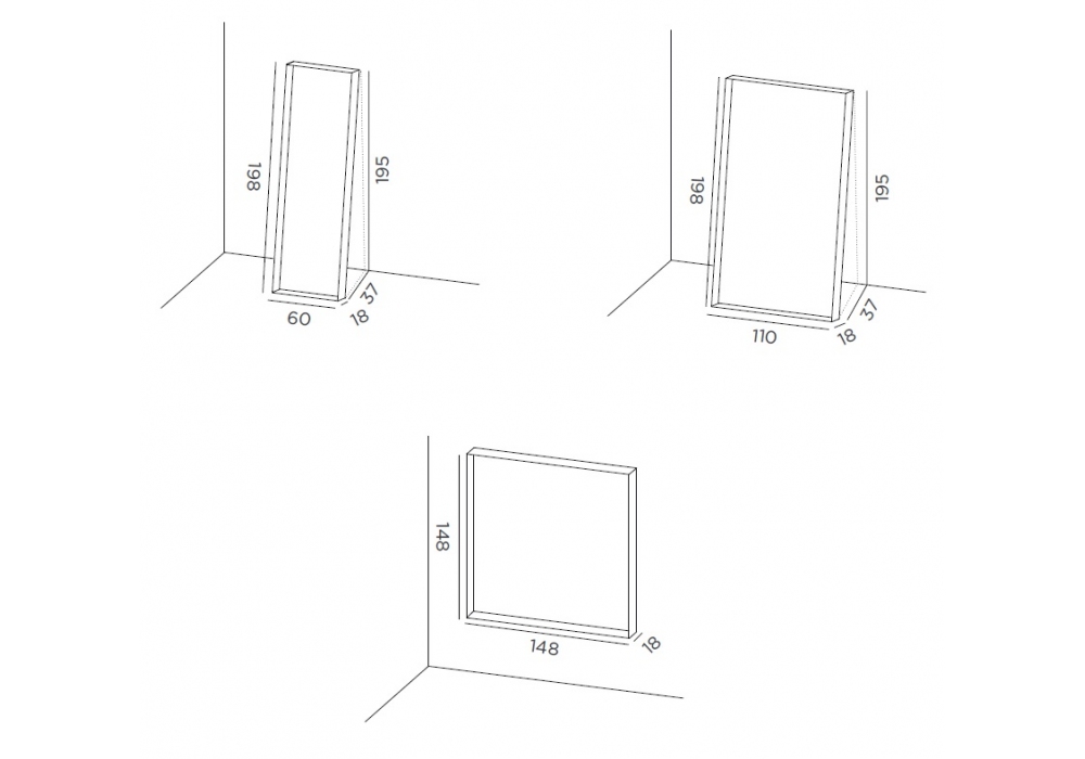 | Dimensions | • 60 x 18 x H 198 cm; • 110 x 18 x H 198 cm; • 148 x 18 x H 148 cm |