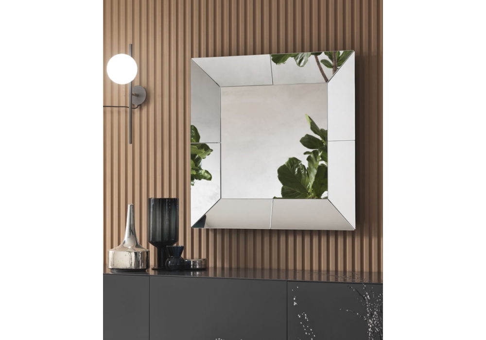 Cube conçu par Riflessi est un miroir réalisé avec un cadre en verre miroir incliné. Disponible en différentes dimensions.