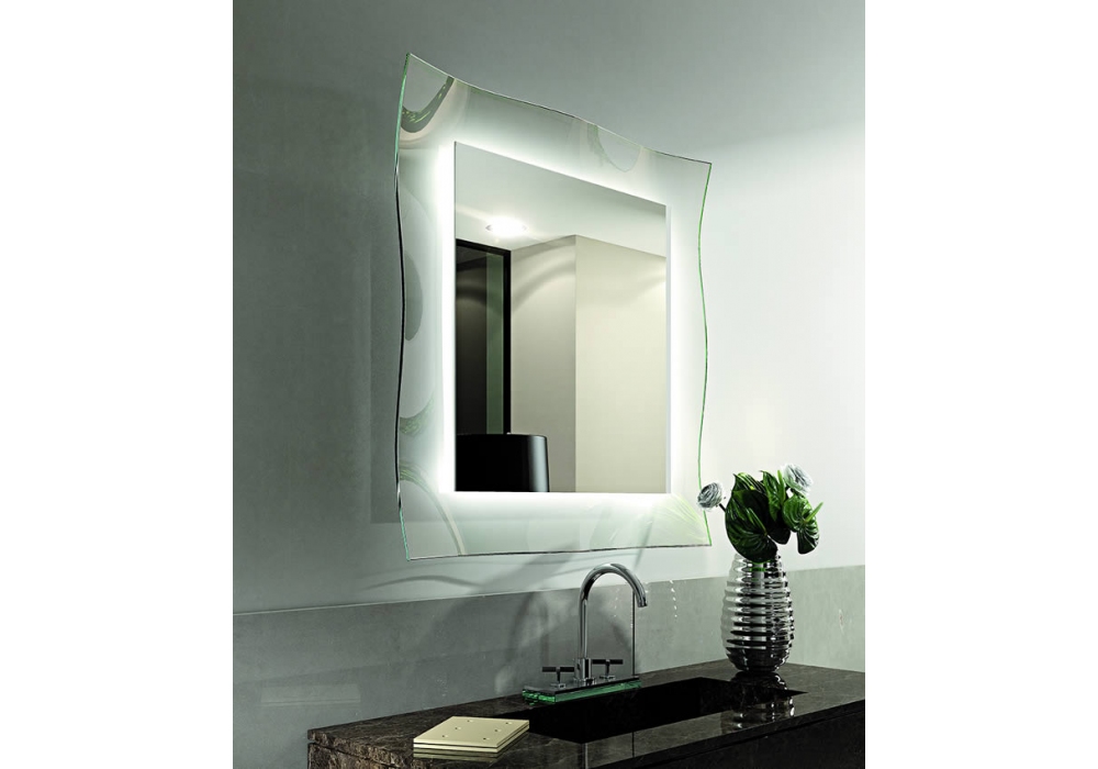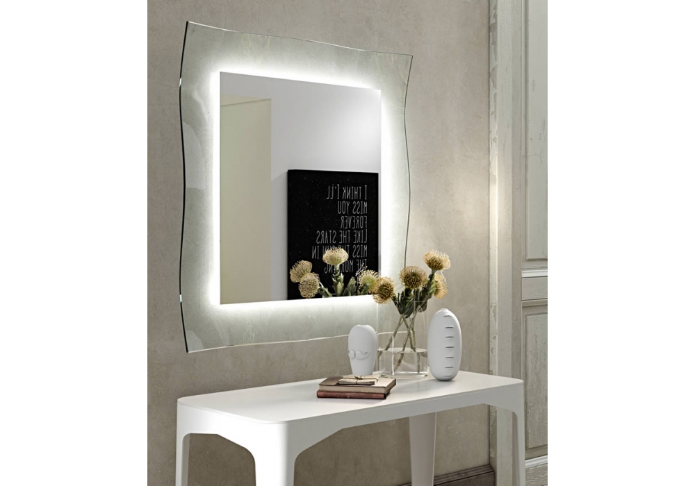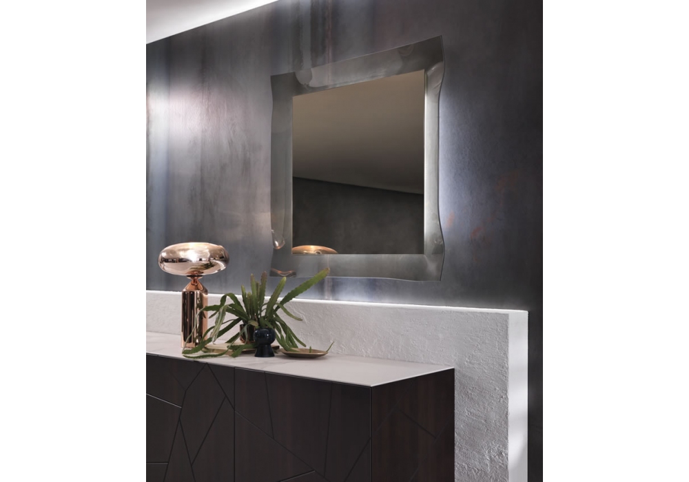 Ginevra conçu par Riflessi est un miroir réalisé avec un cadre ondulé transparent ou bronzé. Disponible avec un éclairage LED à lumière chaude.