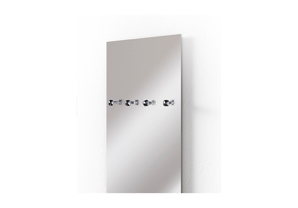 Specchio Chiodo Fisso conçu par DSH pour Minotti Italia est un miroir mural avec quatre cintres fixes chromés en forme de clou. Disponible en deux tailles.