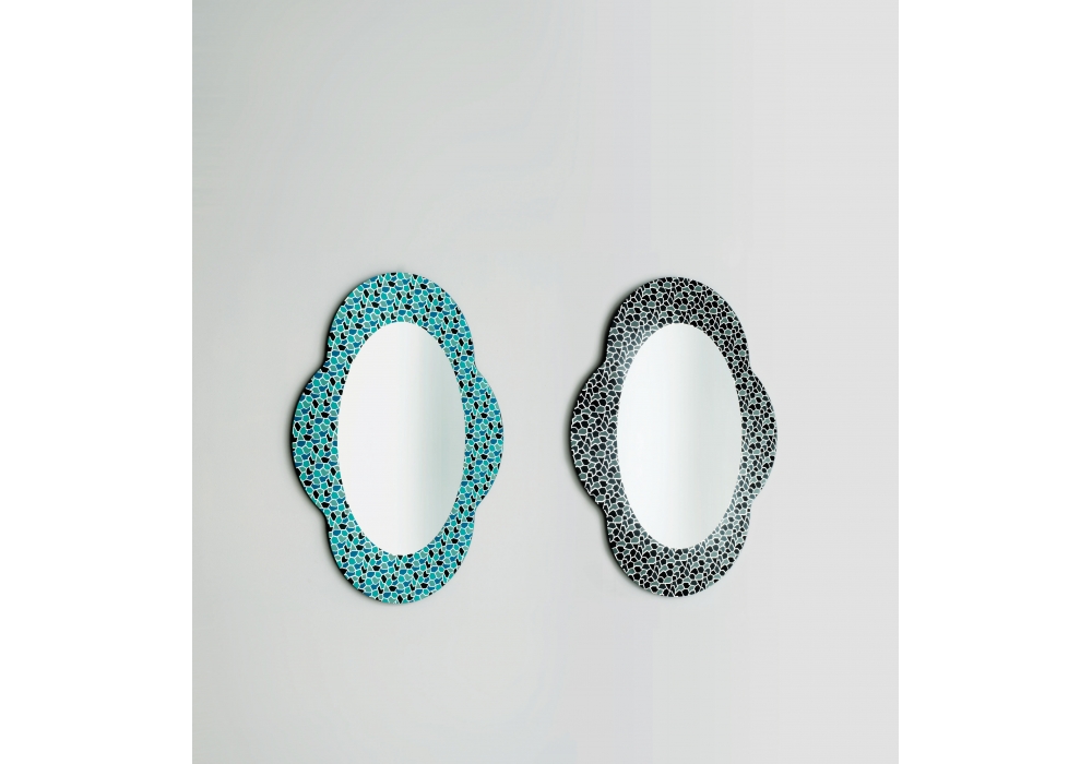 Settecento conçu par Alessandro Mendini pour Glas Italia est un miroir en cristal façonné avec décoration polychrome, disponible en trois couleurs.