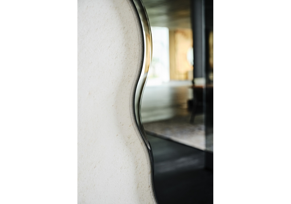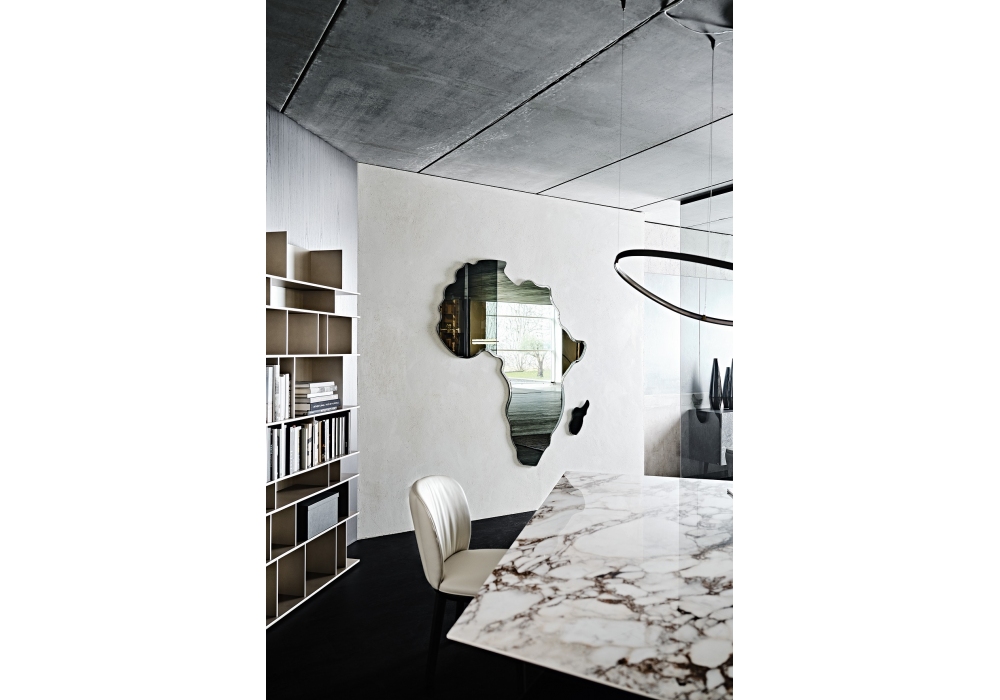 Africa Magnum conçu par Paolo Cattelan pour Cattelan Italia est un miroir mural en verre miroir gris fumé ou bronze avec des bords croissants biseautés.