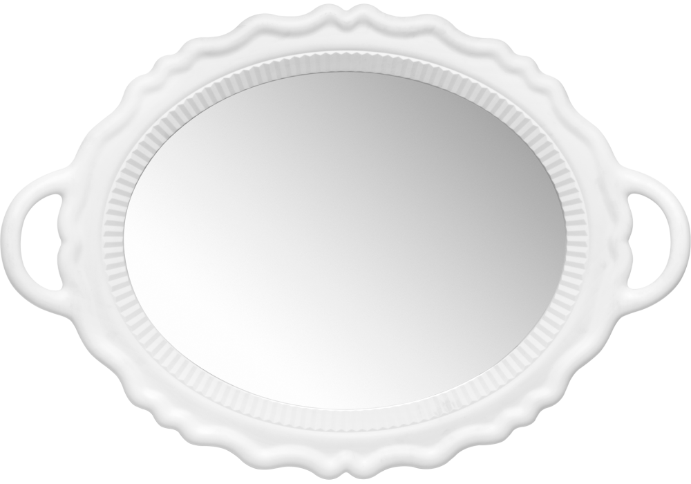 Plateau Miroir conçu par Studio Job pour Qeeboo est un miroir de forme ovale entièrement réalisé en polyéthylène en différentes finitions.
