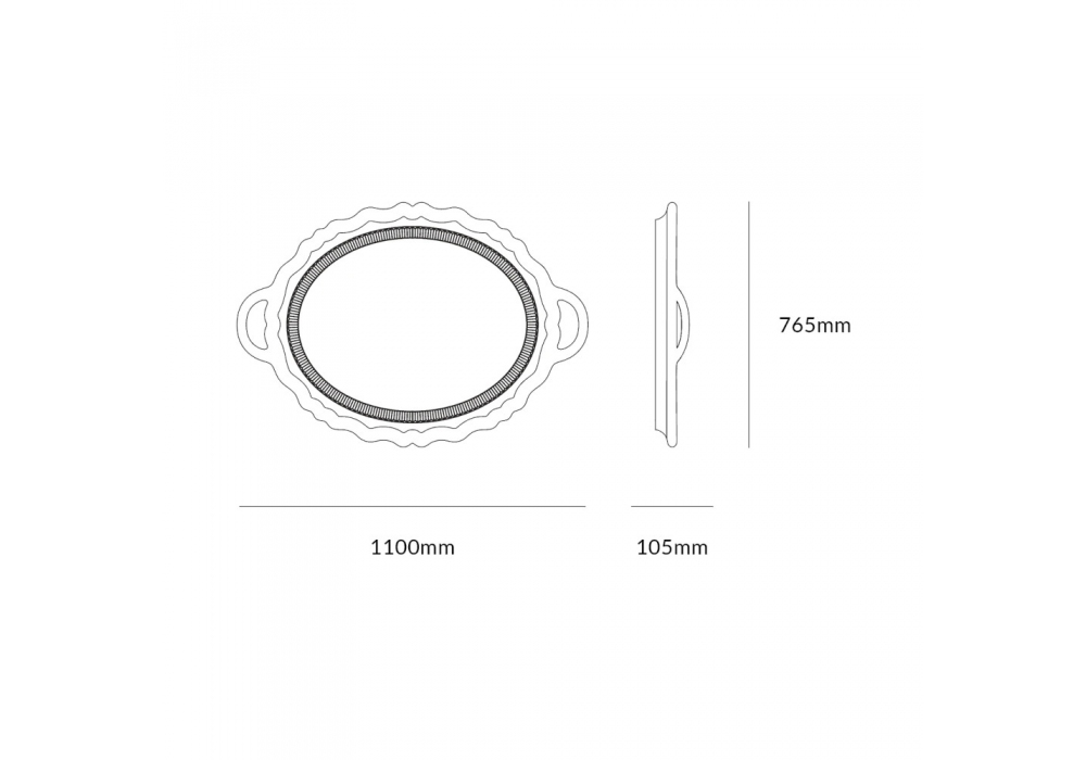 Plateau Miroir Metal conçu par Studio Job pour Qeeboo est un miroir de forme ovale entièrement réalisé en polyéthylène en différentes finitions.