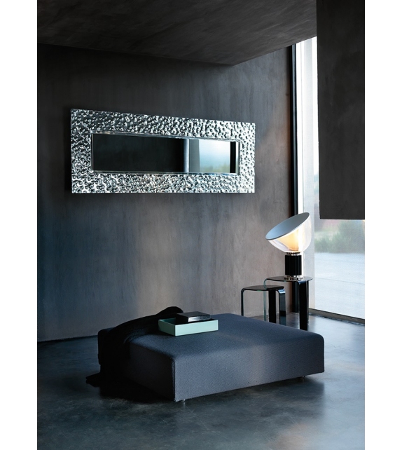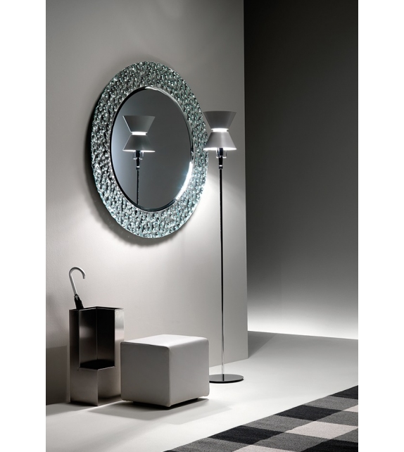 Venus conçu par Vittorio Livi pour Fiam est un miroir en verre fondu à haute température, avec un dos argenté et une décoration artistique en relief. Miroir plat de 5 mm d'épaisseur, cadre arrière en métal peint.