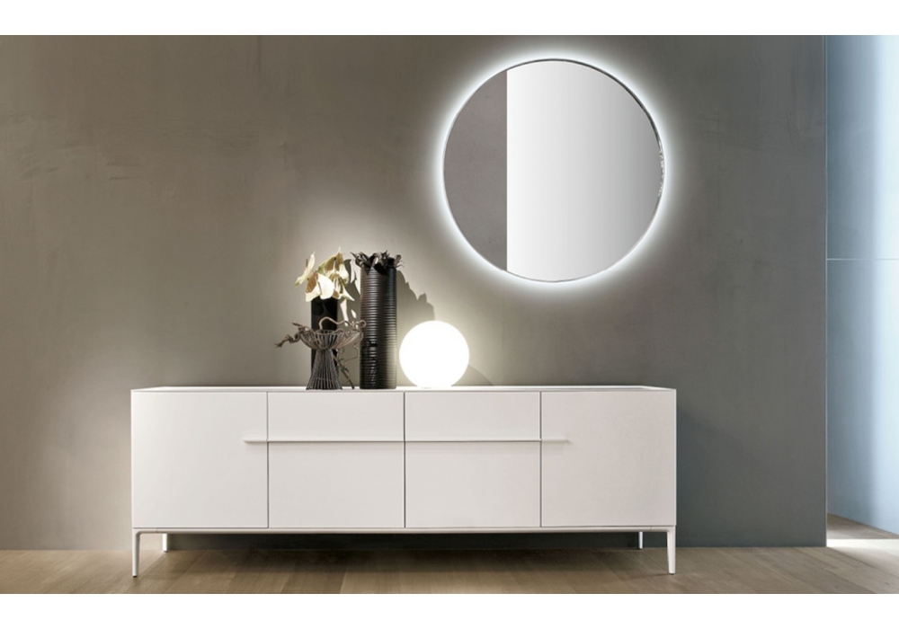 Face to Face conçu par Giuseppe Bavuso pour Alivar est un miroir avec structure en MDF laqué et cadre en acier peint. Retour avec éclairage Smart LED compatible avec Alexa et Google Home sur demande.