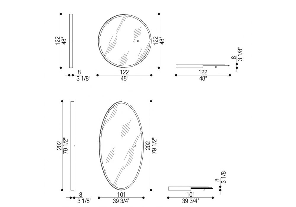 Francine conçu par Castello Lagravinese Studio pour Opera Contemporary est un miroir au design élégant, réalisé avec une structure en métal et MDF avec LED. Disponible en 2 dimensions.
