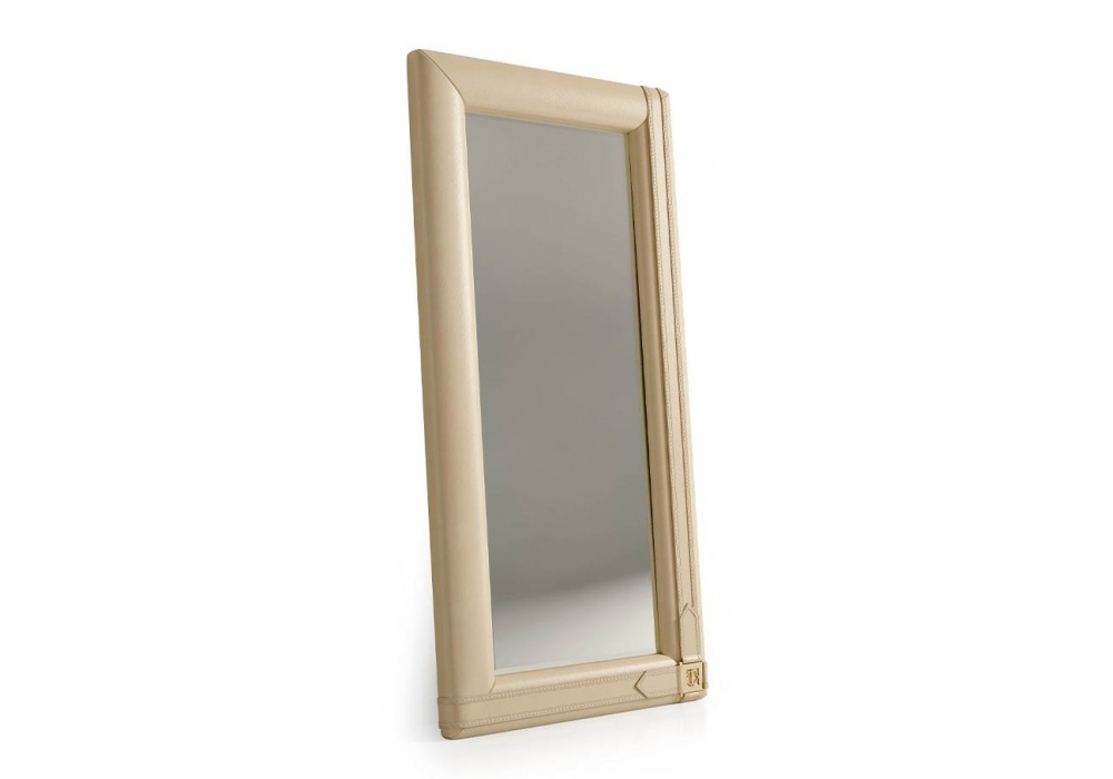 Numero Tre conçu par Roberto Serio pour Turri est un miroir avec structure en MDF recouvert de cuir avec boucles et passants en métal finition dorée. Disponible en différentes dimensions et orientations.