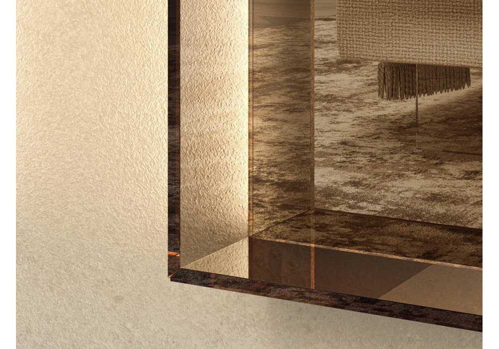 Glass conçu par Daniele Lago pour Lago est un miroir avec cadre en verre. Disponible en différentes finitions et dimensions. Éclairage LED horizontal ou vertical sur demande.