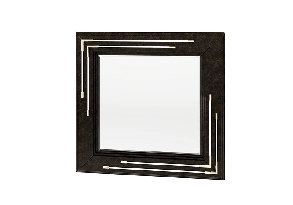 Noir conçu par Andrea Bonini pour Turri est un miroir avec structure en MDF et panneaux de particules en finition laquée brillante avec application de cordons en cuir et parties métalliques en finition dorée ou bronzée.