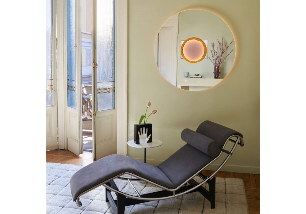 No Vanitas conçu par Patricia Urquiola pour Cassina est un miroir rond réalisé avec murrina en verre de Murano central. Disponible avec ou sans rétroéclairage.