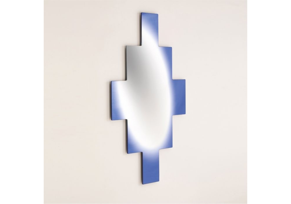 Edaird conçu par Marcelo Burlon pour Driade est un miroir mural dont la forme reproduit le logo MB créé en superposant un miroir de 5 mm. et un verre de 5 mm. extra-clair avec impression numérique ombrée. Le miroir est soutenu par un panneau en mdf de 18 mm d'épaisseur. peint en noir mat, en retrait du profil périmétrique du miroir, tous les bords sont arrondis. Système d'accrochage réglable en hauteur du miroir au mur pour faciliter le positionnement et la mise à niveau. Usage interne uniquement.