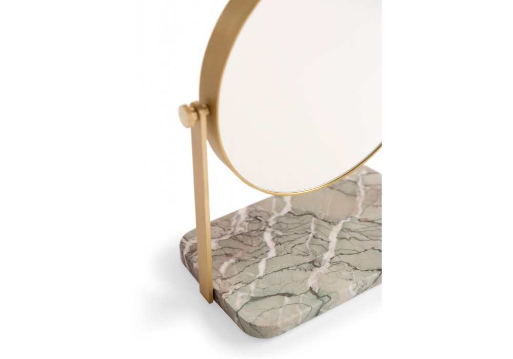 Regarde-moi conçu par Giuseppe Casarosa pour Ceccotti Collezioni est un miroir de table pivotant avec structure en laiton et base en marbre.