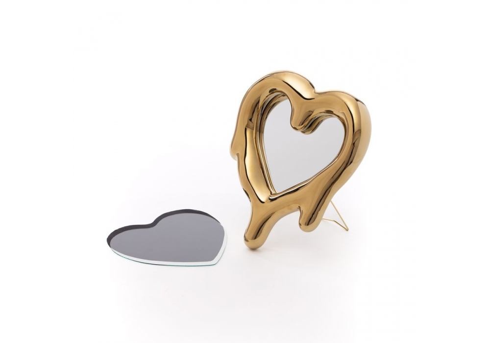 Melted Heart conçu par Marcantonio pour Seletti est un miroir peint avec cadre en porcelaine, couvercle en verre et support en métal. Melted Heart est disponible en différentes finitions.
