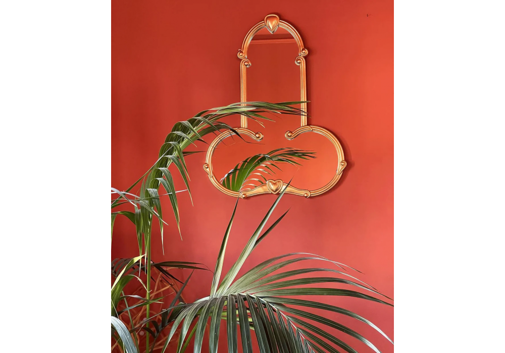 Liberty Man conçu par Francesco Decio pour Seletti est un miroir avec cadre en MDF doré et miroir en verre.
