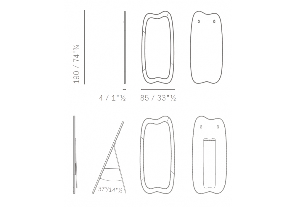 Squash Long conçu par Faye Toogood pour Poltrona Frau est un miroir avec une structure en fibre de bois de densité moyenne et recouverte de Pelle Frau®. La structure est légèrement rembourrée de mousse de polyuréthane et entièrement recouverte de cuir Pelle Frau®. Squash Long est disponible en différentes finitions de cuir et dans une version avec support pour un positionnement pratique sur une surface plane ou sans support pour une application murale.
