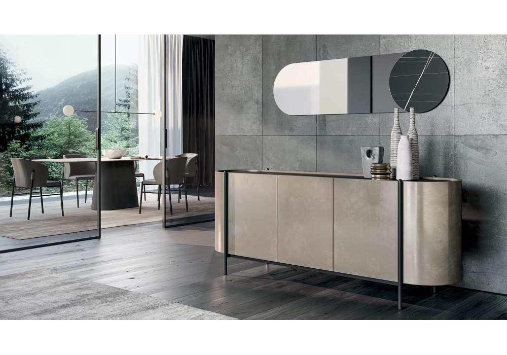 Juno conçu par Signorotto+Partners pour Dall'Agnese est un miroir orientable horizontalement ou verticalement. Insert rond disponible en bois ou en grès.