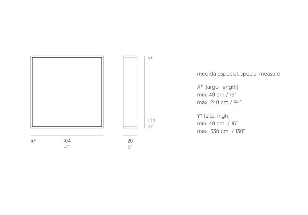 Gbmodular conçu par José A. Gandía-Blasco Canales pour Gandia Blasco est un miroir en aluminium anodisé gravé. Idéal pour l'intérieur comme pour l'extérieur, il est disponible en plusieurs finitions.