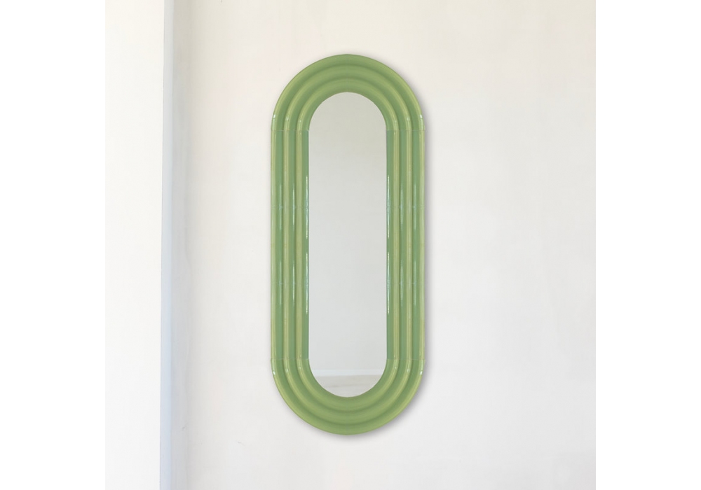 Elo conçu par Pani Jurek est un miroir en céramique émaillé à l'air, fabriqué à la main. Disponible en différentes finitions.
