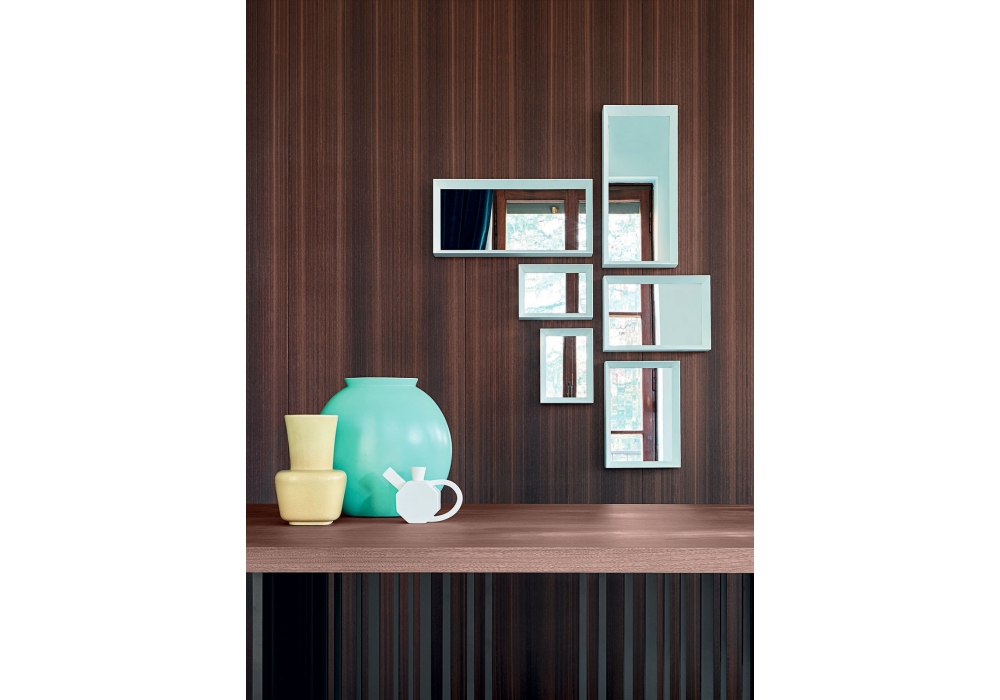 D.950.1 conçu par Gio Ponti pour Molteni&C sont des cadres avec miroir de différentes tailles en bois massif peint à la main de couleur blanche.