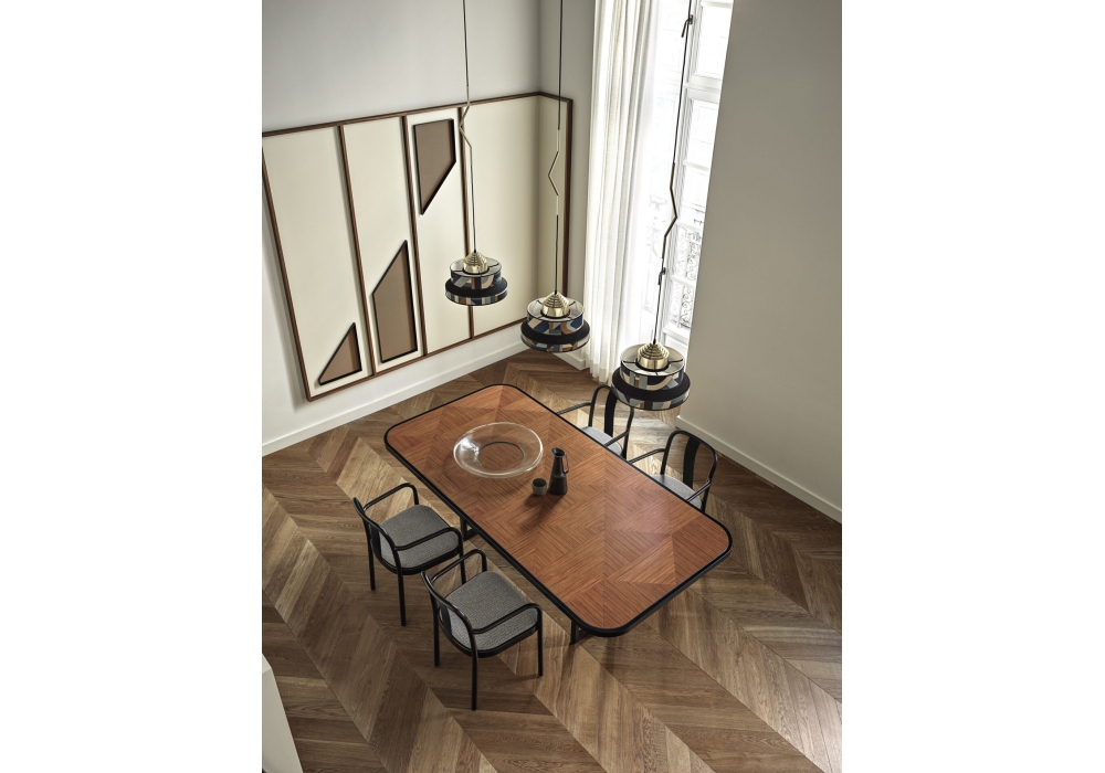 Sugiloo conçue par Michael Anastassiades pour Gebrüder Thonet Vienna est une chaise réalisée en hêtre courbé, disponible en différentes finitions. Assise rembourrée en tissu ou cuir, dossier en contreplaqué. La chaise est également disponible avec ou sans accoudoirs.